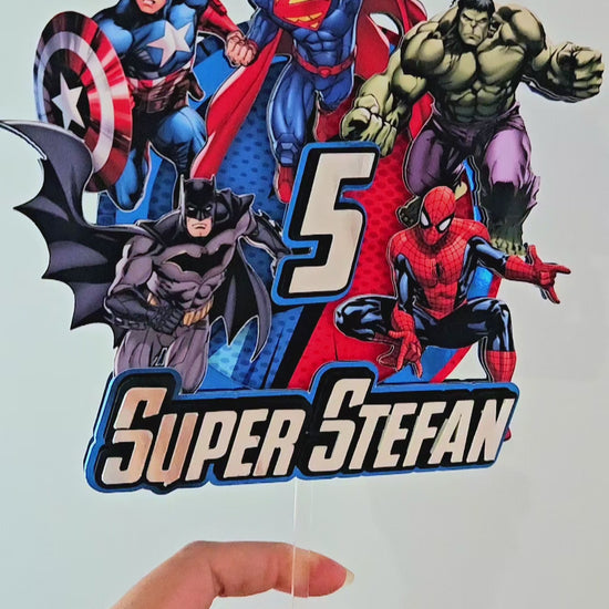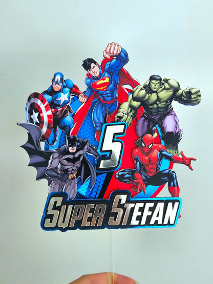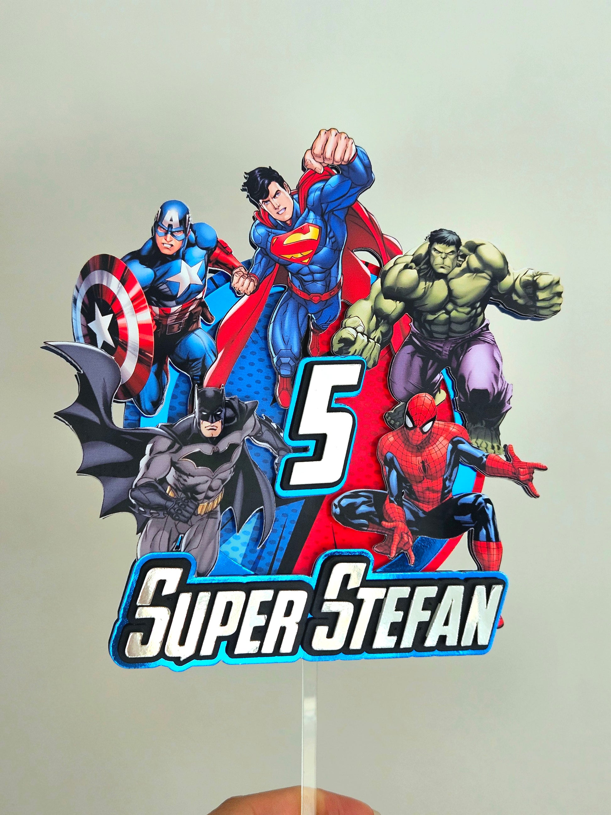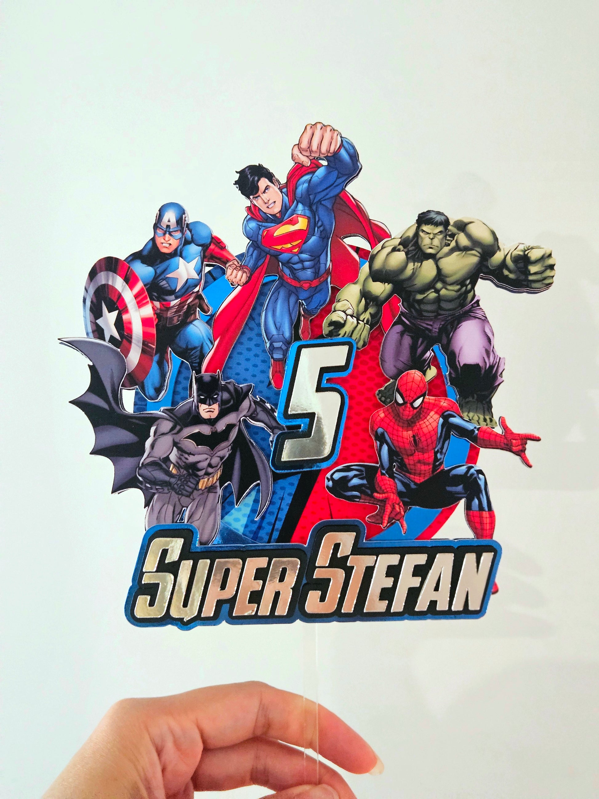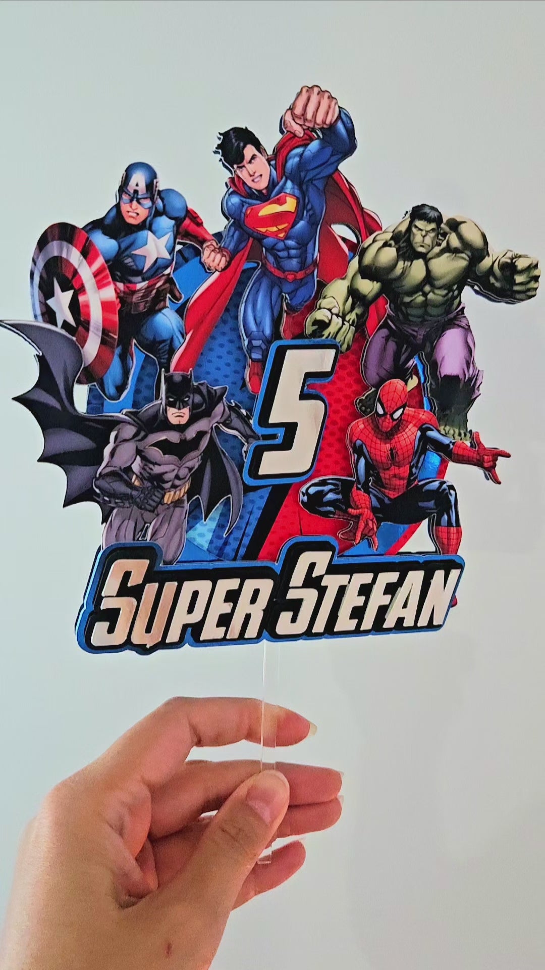 "Make your kid's party even more epic with our Super Heroes Theme Cake Topper! Featuring their favorite characters, this topper adds a fun and unique touch to any cake. Upgrade your celebration with this must-have decoration!"